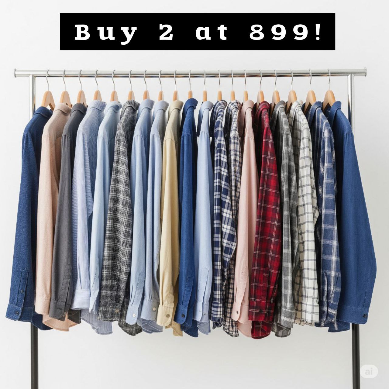 Buy ANY 2 at 899 Double the Savings Today! DOUBLE YOUR STYLE, NOT YOUR SPEND! GET 2 PREMIUM SHIRTS FOR 899!